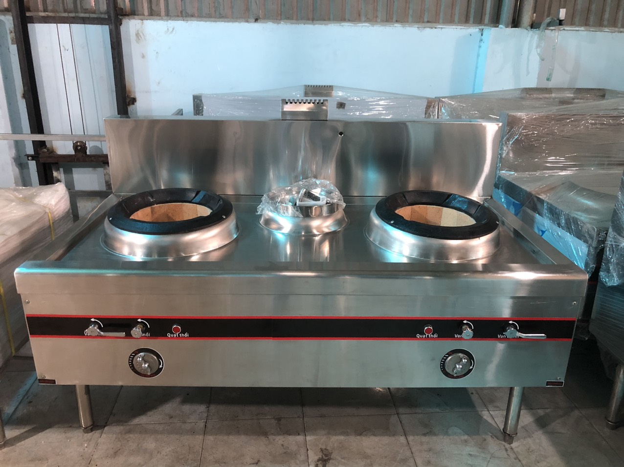 Bếp Á đôi họng đất quạt thổi có bầu nước – ngọn lửa mạnh, nấu nhanh, tiết kiệm gas. Thiết kế inox 304 cao cấp, phù hợp bếp nhà hàng, khách sạn, bếp ăn công nghiệp