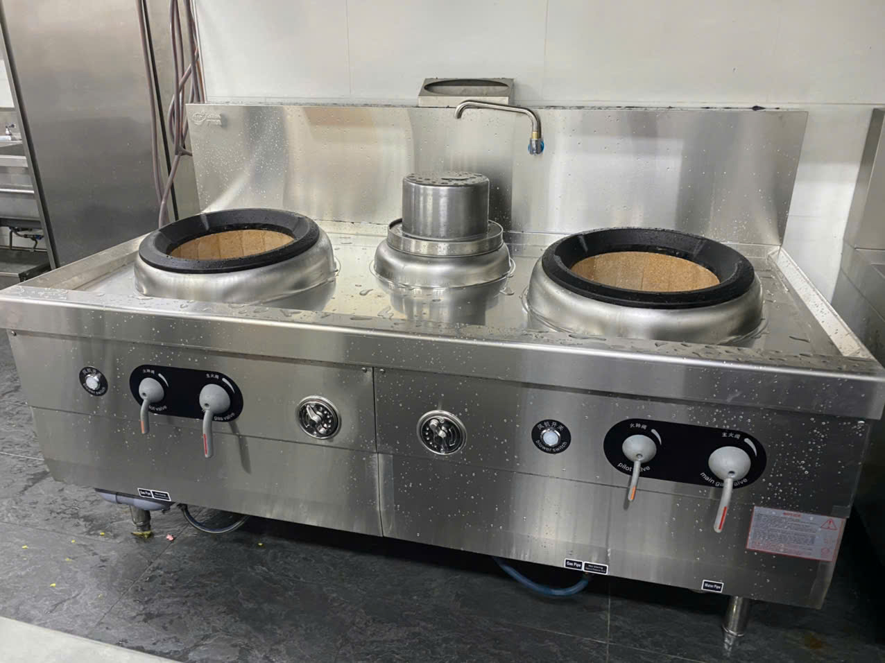 | Có hệ thống | Ống cấp nước, vòi nước inox, máng thoát nước, chắn chắn dầu mỡ |